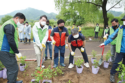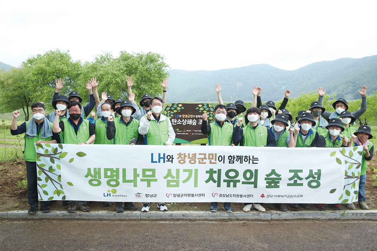 LH는 4월 26일 경남 창녕군 길곡수변생태공원에서 나무 심기 봉사활동을 진행했다. 길곡수변생태공원에 수국나무 1,800그루 포함 창녕군 전역에 총 4,350그루를 심어 탄소상쇄 숲을 조성한다. 이날 행사에는 김현준 LH사장을 비롯한 임직원 30여 명, 김무진 창녕군 부군수, 전지수 경남자원봉사센터 이사장이 참석했다.