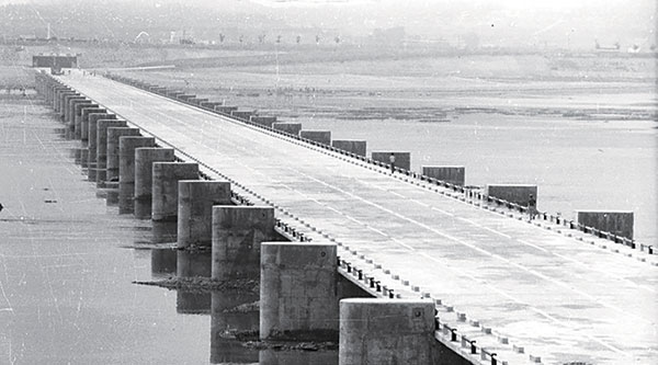 - 잠수교 전경. 잠수교는 ‘안보교’라고도 불렸는데 전쟁 등 유사시에 파괴되더라도 짧은 경간으로 인해 신속한 복구가 가능했기 때문이다.
