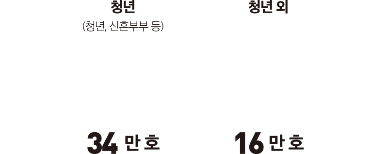 청년과 무주택자의 내 집 마련의 기회를 확대하고 주거사다리를 제공하기 위해 공공주택 50만호 공급을 목표로 2027년까지 추진한다. 연도별로 살펴보면 올해 7.6만 호를 시작으로 2024년 9.0만 호, 2025년 10만 호, 2026년 10.4만 호, 2027년 13만 호가 공급될 예정이다.