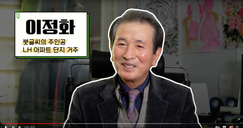 울산에서 날아온 감동의 붓글씨2023년 새해에 LH 앞으로 도착한 칭찬글. 붓글씨로 쓴 정성 가득한 칭찬글을 누가, 어떻게, 왜 보내게 됐을까? 그 주인공은 바로 울산광역시에 살고 있는 이정화 씨였다. LH 아파트에 살고 있는 그는 LH 직원의 적극적이고 열정적인 자세와 스마트한 업무 처리에 감동을 받아 이에 보답하고자 칭찬글을 전하게 된 것이다. 주인공을 만나 사연을 직접 듣고, 먹향이 가득한 곳에서 붓글씨를 배우는 시간도 가졌다. 이정화 씨는 “붓을 들고 그림을 그릴 때야말로 잡념이 없어지고 근심 걱정이 다 사라진다. 금은보화보다 더 좋다”라고말하며 서예의 매력을 전했다. 그는 마지막으로 LH 직원들을 위해 “힘내세요”라며 신년인사를 전했다.