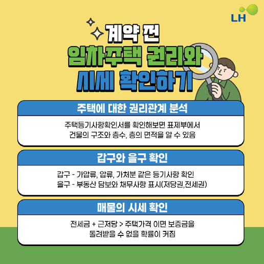 셋째, 계약 후에는 전입신고와 확정일자를 발급받아야 한다. 만약 집이 경매나 공매로 넘어갔을 때 빠른 확정일자로 후순위 채권자보다 보증금을 우선 변제받을 수 있는 우선 변제권이 생긴다.