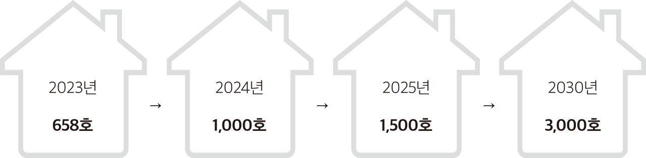 공공발주기관의 공업화주택 공급물량은 2030년까지 연간 3천 호 발주를 목표로 한다. 연도별 공급물량은 2023년 658호, 2024년 1천 호, 2025년 1천500호, 2030년 3천 호로 매년 확대해 나갈 계획이다.